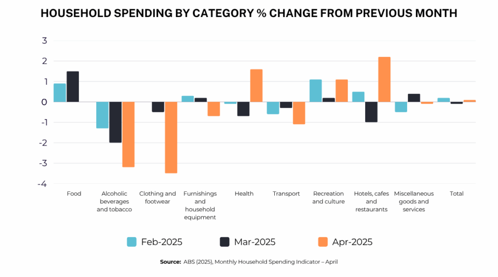 Household spending in April was just 0.1% higher than the month before, while retail spending was actually 0.1% lower, according to the latest data from the Australian Bureau of Statistics.